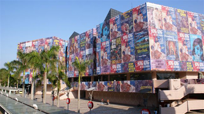 Megaprint covered the whole of Hong Kong Art museum and Cultural center and surrounding walls in mesh wrap material in this striking retro Arts festival promotion.
