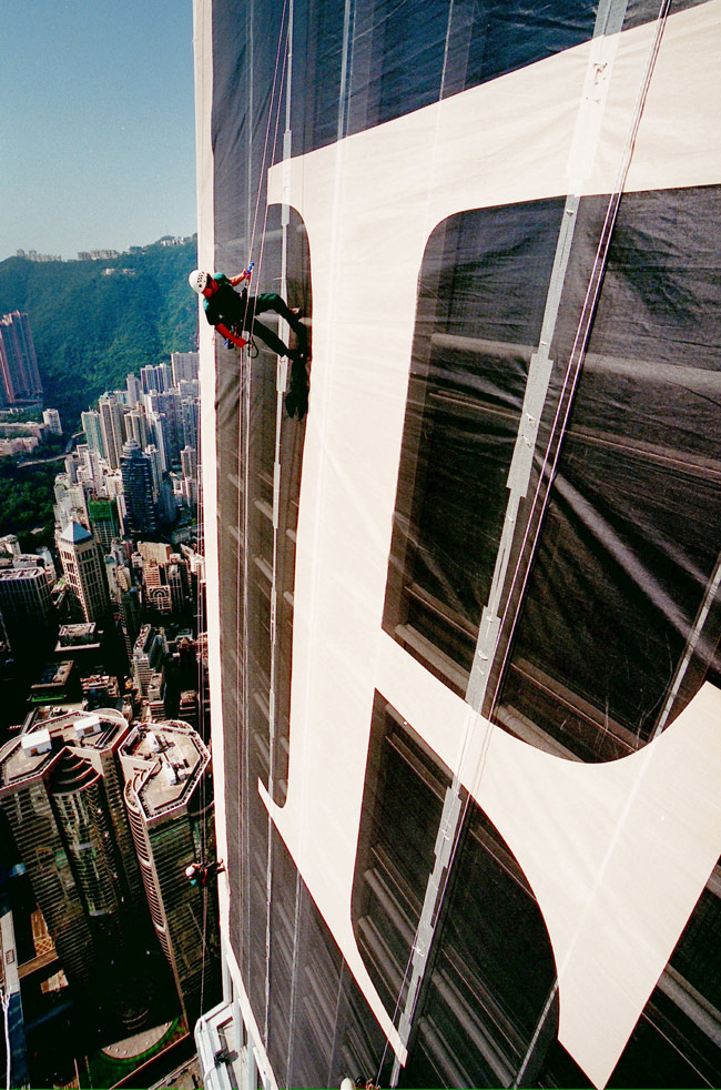 This unique project saw Two IFC wrapped in the world's biggest newspaper to highlight Financial Times' recently launched Asian edition and, at the same time, raise the profile of Hong Kong's tallest skyscraper which had recently been completed. The building wrap was the first of its kind seen in Hong Kong and used 20,000 square metres of mesh-style fabric. The wrap at a height of 400 metres covered 50 floors of the Two IFC building on the North and East sides and was taller than all but a handful of Europe's highest skyscrapers. The wrap took almost two weeks to print and 12 days to erect. At the time, it was the second largest billboard in the world at that time.
